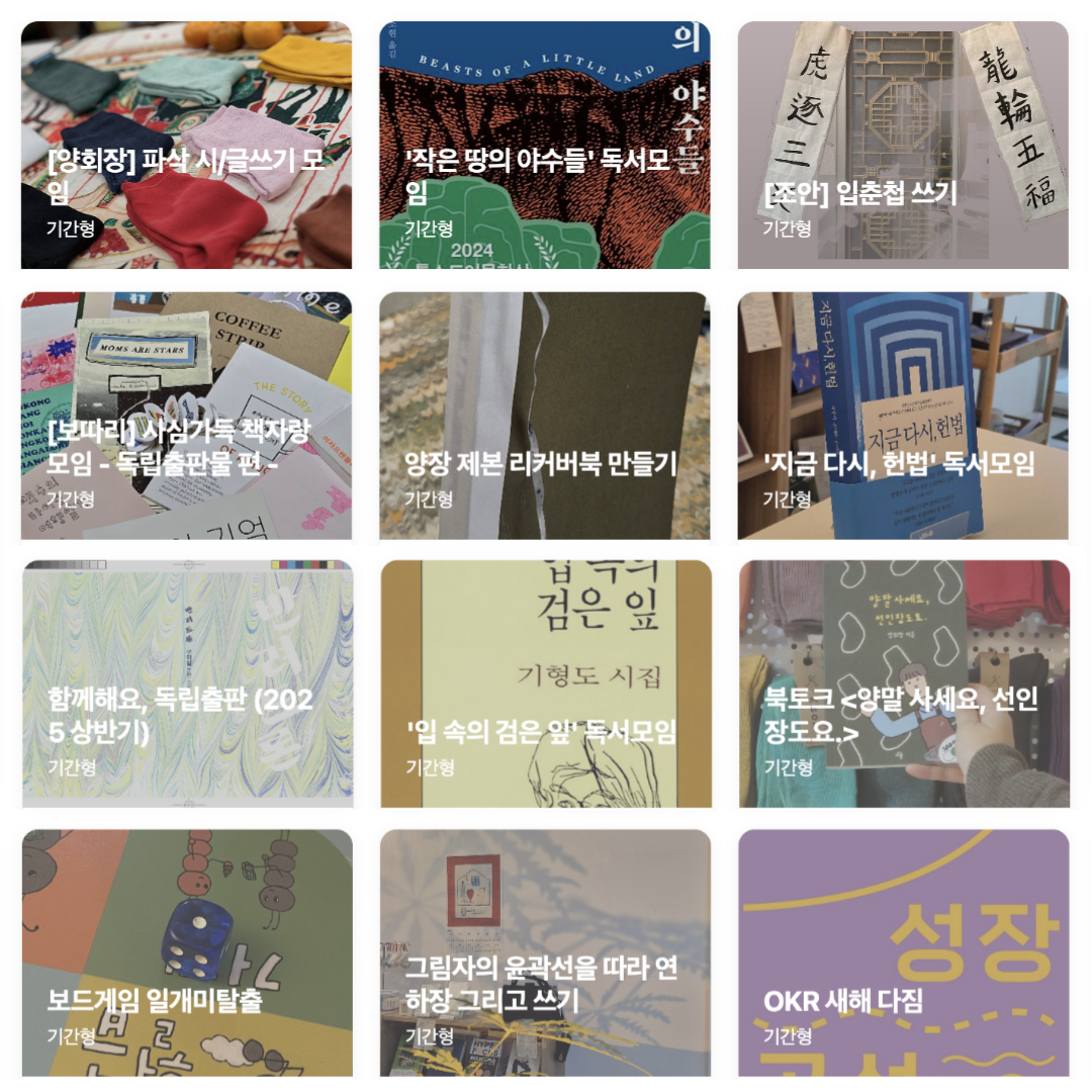 기존 프로그램 중에 독서 모임도 있지만, 보드게임 모임이나 드로잉 모임도 있어요.