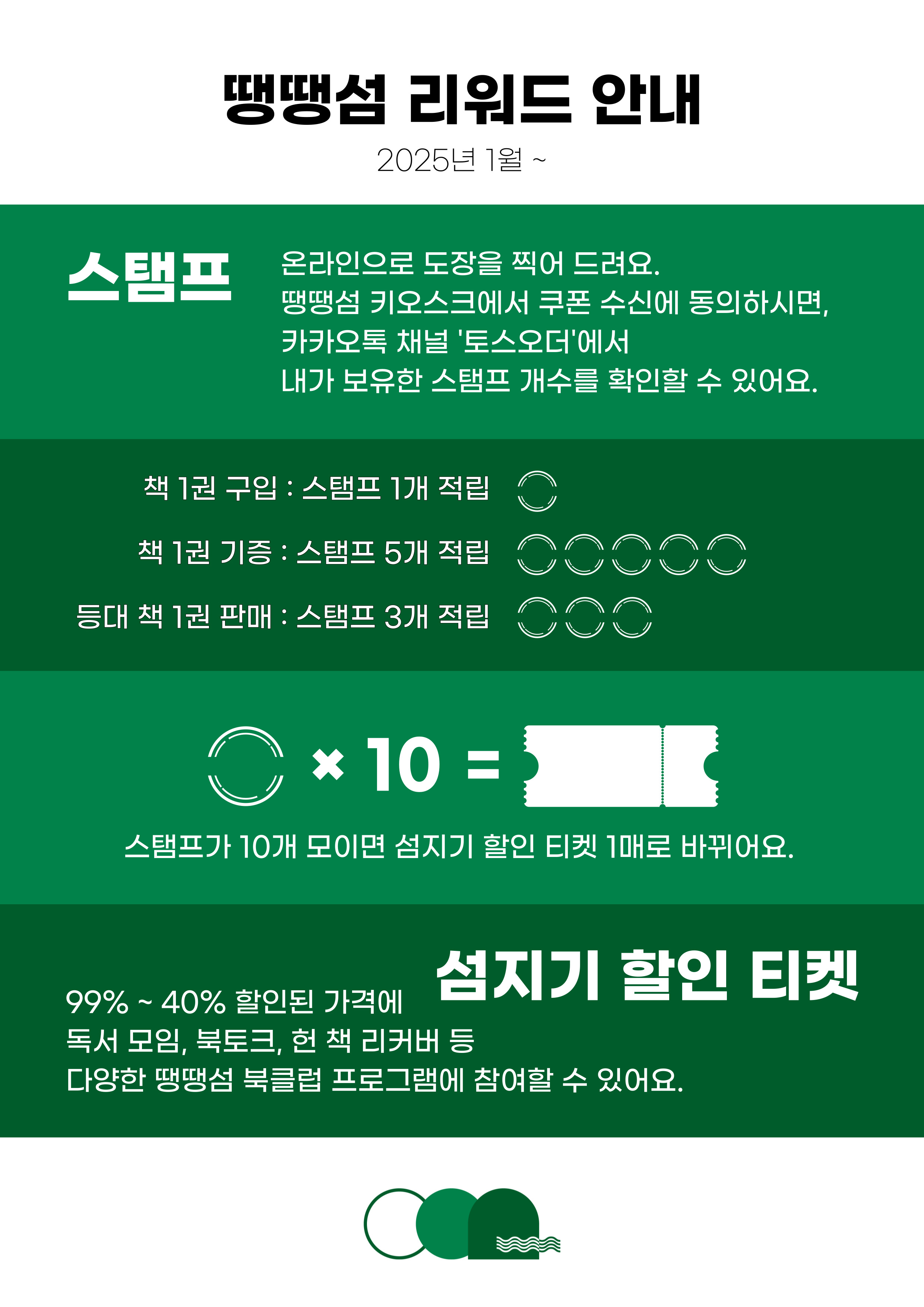 섬지기 할인 티켓을 사용하면 99% ~ 40% 할인된 가격에 다양한 땡땡섬 북클럽 프로그램에 참여할 수 있어요.